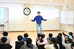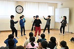 日本人学校の向かいにある中学校の生徒25名を招いて、交流学習をしました。日本文化の紹介をテーマに、折り鶴を折ったり、けん玉、こま回し、だるま落としなどの日本の昔遊びを一緒にしたりしました。子どもたちは、身振り手振りを交えながら、少しでも楽しんでもらおうと、一生懸命説明していました。すぐ近くの学校ですが、なかなか交流する機会がなかったので、今後の交流につながるよい機会となりました。